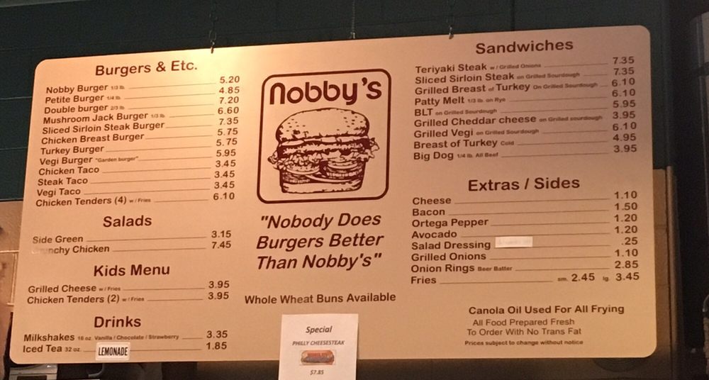 Nobby’s Menu (Update 2025)