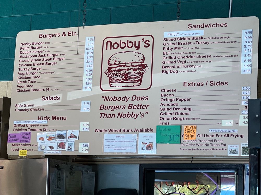 Nobby's, located in Chico, CA, is a burger joint that stands out with its unique offerings. Customers rave about the cheese skirt, a melted cheese disc overflowing past the burger, adding a crispy and savory touch. In addition to classic burgers, Nobby's offers chicken sandwiches, turkey burgers, veggie options, and indulgent sides like fries, onion rings, and cheese curds. While some reviewers note the burgers could use more flavor, others praise the juicy patties and generous portion sizes. The laid-back atmosphere, quick service, and reasonable prices make Nobby's a go-to spot for a satisfying meal. If you're in the area, don't miss out on this local favorite for a truly memorable burger experience.